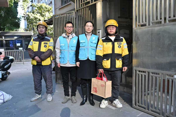 外卖员和网格员送“鹤”礼上门